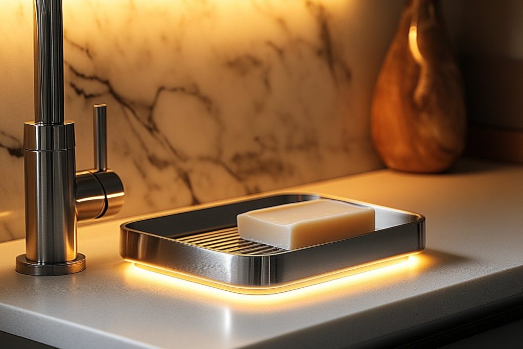 Le porte-savon aimanté combine simplicité et efficacité, en particulier lorsqu’il est utilisé avec un socle en métal ou directement fixé sur une structure métallique. Il maintient solidement le savon en place tout en permettant un accès facile. Sa conception minimaliste convient parfaitement aux cuisines modernes recherchant à réduire les encombrements.